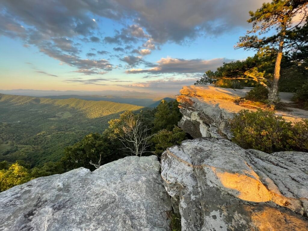 Camping and fires are prohibited at the Triple Crown features, and National Park Service rangers can issue significant fines to anyone found camping there. So it meant a relatively short one-mile walk from the shelter to try to catch the sunset at Tinker Cliffs. The views from the top of Tinker were amazing, but clouds obscured the sunset, so I started hiking back down while there was still a little light.