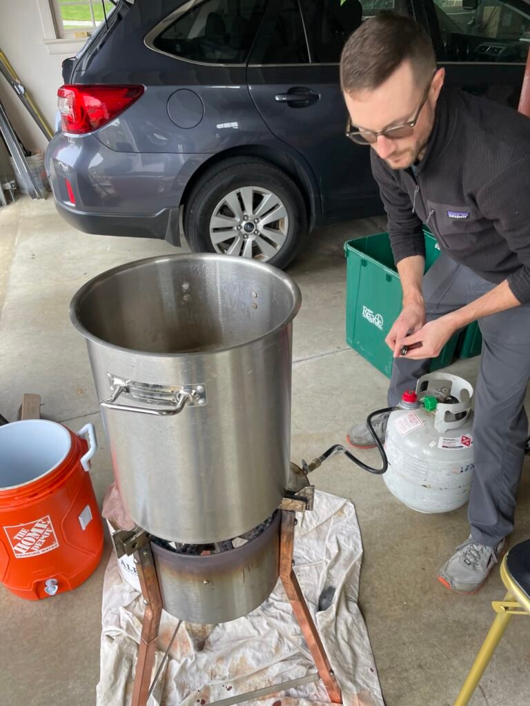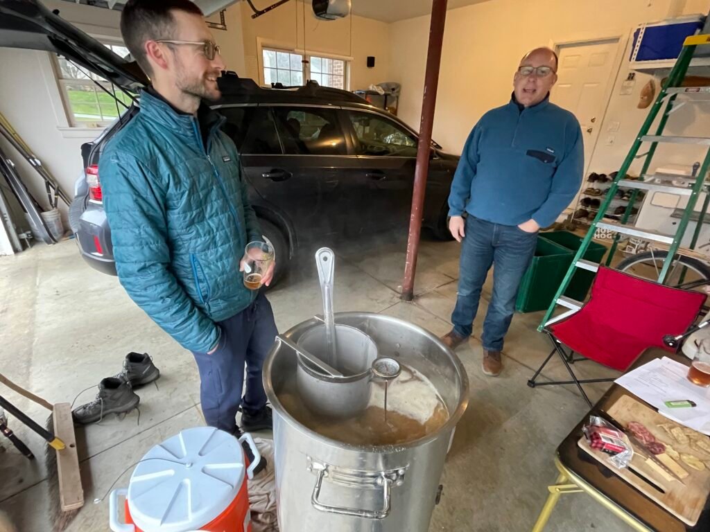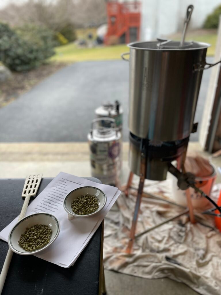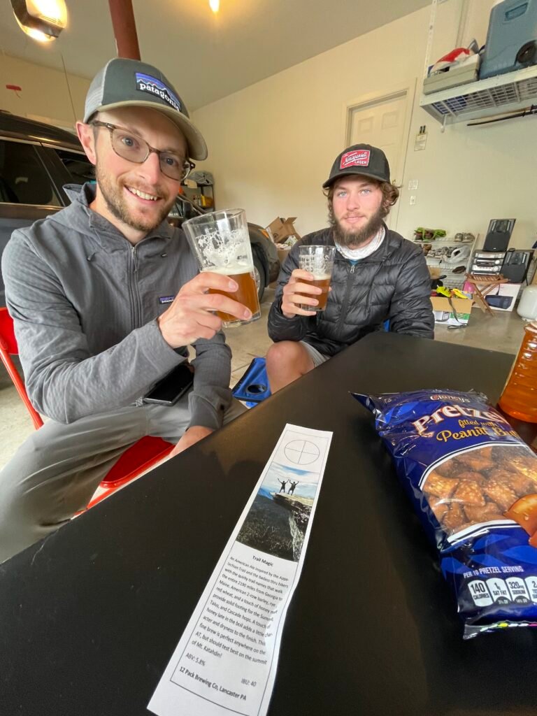 In that spirit, Hiker Trash Brewing Company (HTBC) designed a recipe for Trail Magic, an American Pale Ale, using ingredients that evoke themes of the outdoors and hiking the AT. It was first brewed in Spring of 2021, just in time for the leading edge of the AT bubble passing through Pennsylvania. Gramps and Santa were the first thru-hikers to sample the inaugural batch of Trail Magic and spend a zero day serving as quality-control experts and assistant brewers. Batch #2 was supervised by Gramps and CW.