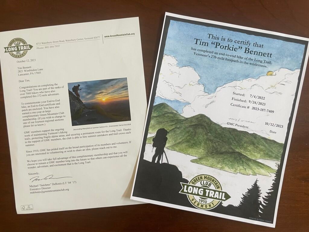 Fortunately, the Green Mountain Club makes no distinction between section hikers or thru-hikers in recognizing those who complete the entire LT as End-to-Enders. I like that. In my mind, thru-hiking is more of an attitude, something that can’t be measured in miles, time, or awards. It’s a mindset that keeps me going and able to face the challenges that come with the journey. I am proud to be recognized as a Long Trail End-to-Ender. I look forward to more thru-hikes in the near future.